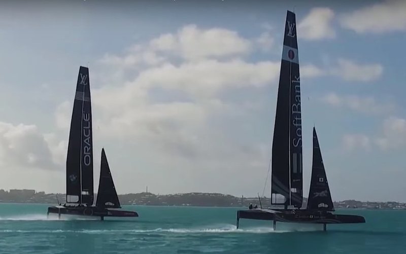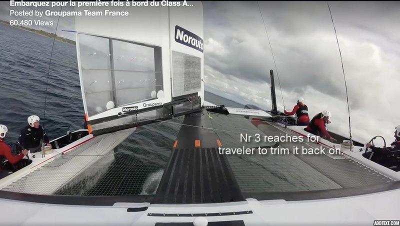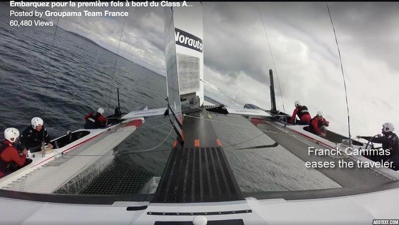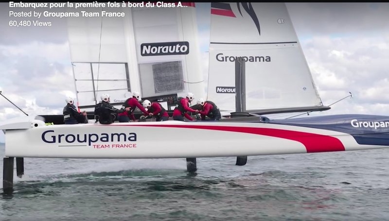This Team France video shows them training in Lorient, France with their AC45x test boat. I don't think they were in real danger of capsizing, but the gybe at 40 seconds into the video did not go right! Of course, we've seen footage of all the teams splashing down as they work to master their manoeuvres. Click the photo to watch the video.