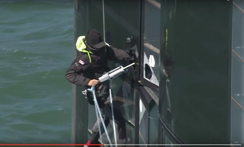 Less than an hour before the start of the deciding race, a bracket broke inside Oracle's AC72 wing. Oracle and Team New Zealand were tied 8-8. This race would decide the 2013 America's Cup. The breakage needed to be stabilized or else the control arm for the wing's flap would be jammed and Oracle would be unable to race. This video shows what happened.