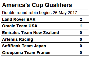Leaderboard for the round robin AC Qualifiers that begin 26 May 2017 in Bermuda:
