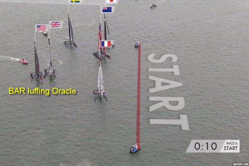 In the first race on Sunday, BAR picked up a penalty in the pre-start but were able to push both Oracle and Team New Zealand past the end of the starting line, preventing both of those teams from threatening the Brits' overall series lead.