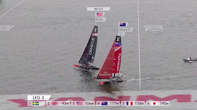 Team New Zealand had a double penalty in Race 5. I'm getting a clarification and will explain it next week. If you want to get a head start on understanding what happened, read Rule 44.4(c) in the Racing Rules of Sailing - AC Edition, which you can download here.